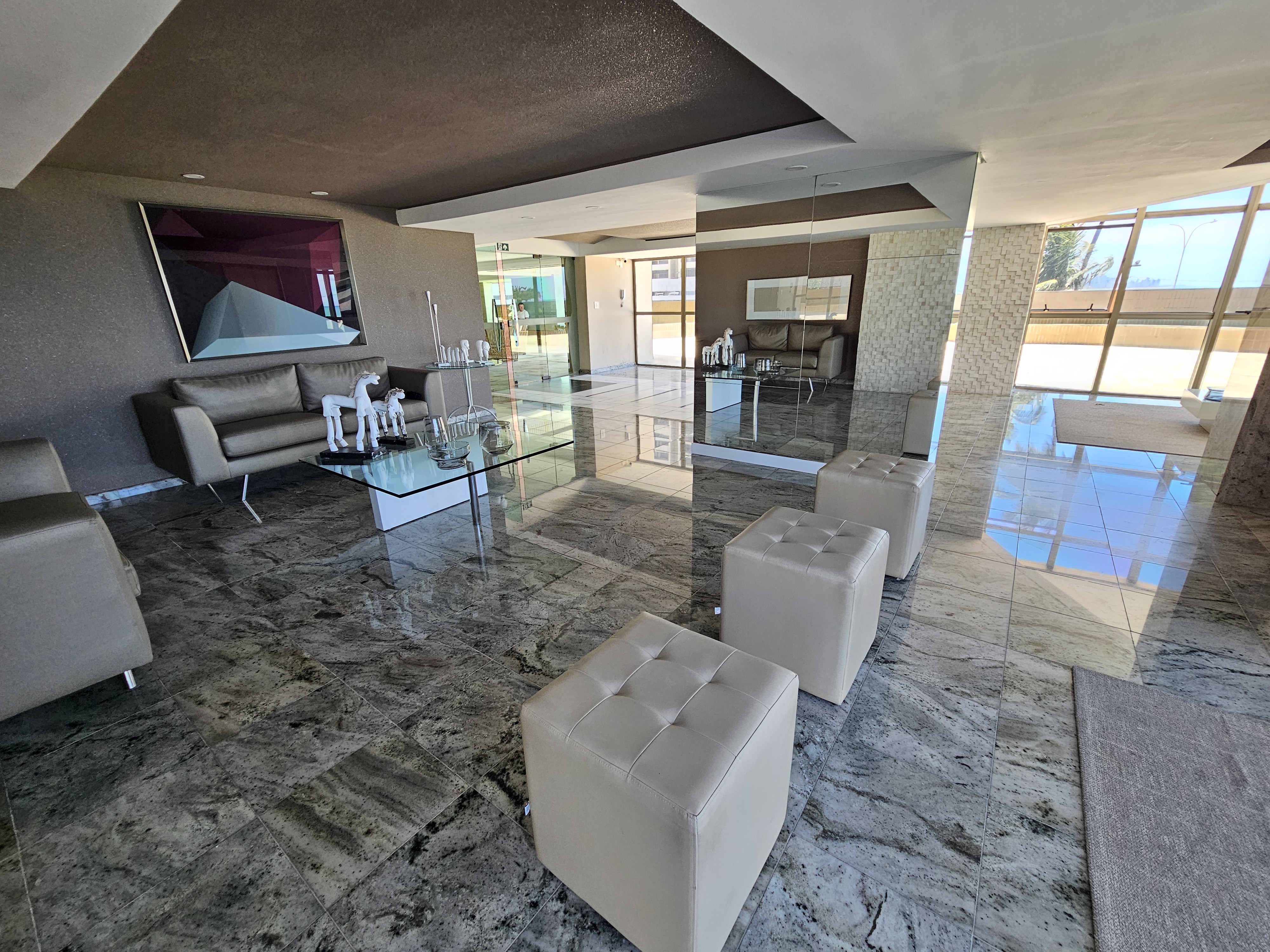 Apartamento de 238m² com 04 suítes, sala ampla junto a um ambiente gourmet para receber visitas, além da varanda com linda vista.